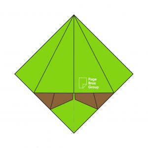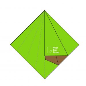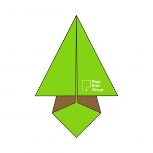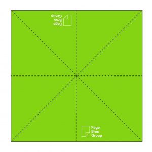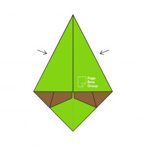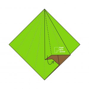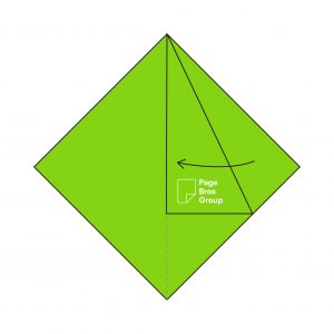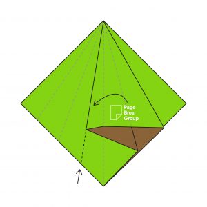 5) Take one layer on the right-hand side and fold it into the centre, creating a diagonal crease with the Page Bros logo now visible.