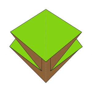13) Flip the origami to the other side and repeat steps 5 – 11 on the reverse side. Once complete, it should look like diagram 14.
