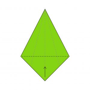 15) You should now have an upside-down kite shape. Fold the bottom point up along the dotted line to create a crease.